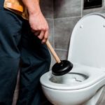 For major clogs, it’s best to call a professional plumber. A plumber will typically use a very long, electric drain snake or a sewer auger to break up clogs in your toilet drain, no matter how far in the system they may be. If need be, they can also disassemble the toilet and pipes to remove the blockage.